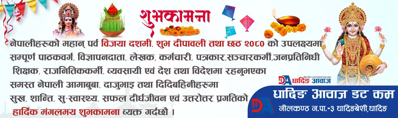 धादिङ । धादिङ जिल्लामै पहिलो पटक भएको धादिङ लोक सांस्कृतिक महोत्सव सकिएको छ । राष्ट्रिय लोक तथा दोहोरी गीत... विस्तृतमा